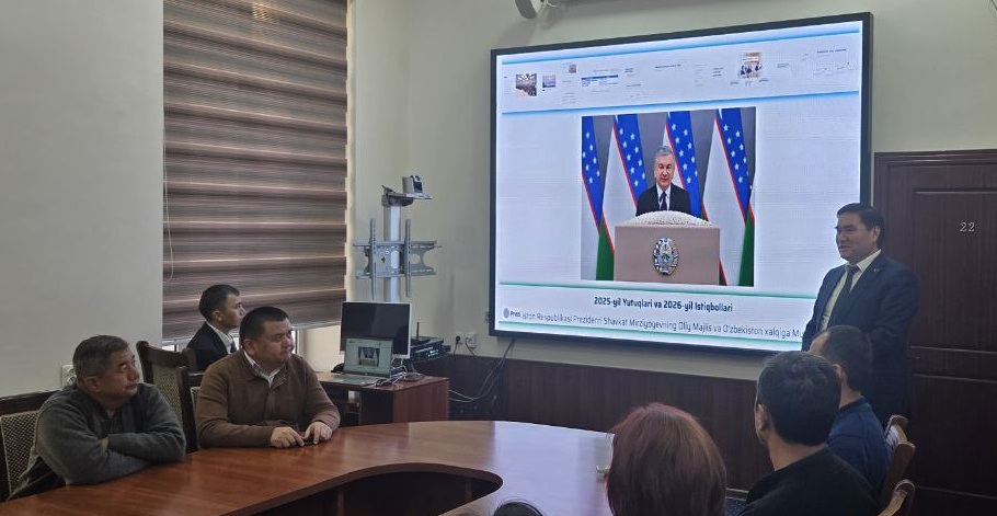 Шундан сўнг Мурожаатномада белгиланган ва 2026 йилда амалга ошириладиган энг муҳим 6 та устувор йўналишнинг аҳамияти хусусида Ўзбекистон давлат санъат ва маданият институти профессори, тарих фанлари доктори А.Маврулов, Тошкент давлат иқтисодиёт университети профессори, иқтисодиёт фанлари доктори Ш.Аллаёров ҳамда Жамоат хавфсизлиги университети доценти, юридик фанлар бўйича фалсафа доктори (PhD) Б.Ғиёсов маъруза қилди. -