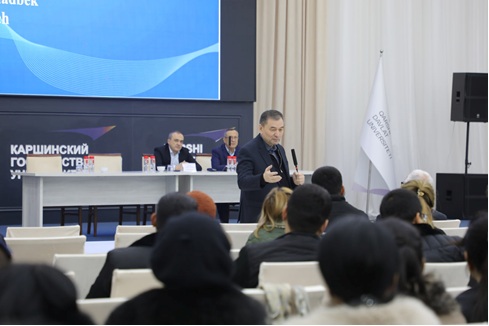 Қарши давлат университетида Ўзбекистон Республикаси Олий аттестация комиссияси (ОАК) раиси Юсупов Ахмадбек Таджиевич билан очиқ мулоқот шаклида учрашув бўлиб ўтди (18.12.2025 й.).